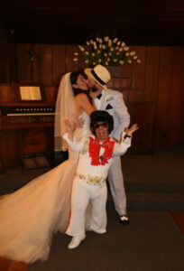 - Mini Elvis to officiate the wedding or vow renewal ceremony with special Elvis Vows and taking care all the paperwork