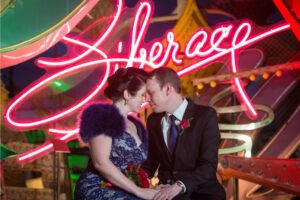 Exclusive to us at Las Vegas Weddings is the Neon Bone yard Photography package. This is a quintessential place in Vegas where you can have an exclusive photo shoot for your wedding day. As we have an exclusive deal with the Neon Bone yard we know the best place to have your photos, the most INCREDIBLE shots as the LED lights get switched on at Sunset.